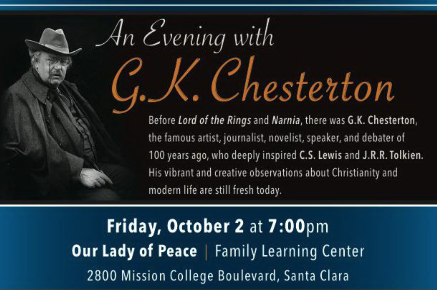 This free & open to the public event is hosted by Our Lady of Peace Church and the Bay Area Chesterton Society, good will offerings will gratefully be accepted to help defray our speaker costs.