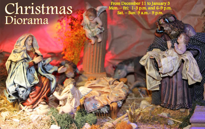 Taking the Christmas Nativity Scene one step forward, the 600+ sq. foot Diorama represents the life and time of the birth of Jesus. Please visit the Christmas Diorama in the Room 1101